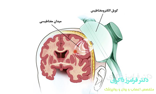در ابتدای درمان به دلیل این که این دستگاه با وارد کردن پالس های مغناطیسی کار خودرا انجام می دهد از قرد درخواست می شود در صورت همراه داشتن وسایل فلزی، آن ها را از خود جدا کند. همچنین ممکن است در صورتی که صدای دستگاه بیمار را اذیت می کند از گوش گیر استفاده شود. پیش از شروع به درمان ابتدا پزشک با معاینه ی دقیق، محل درد و محل قرار گیری سیم پیچ و آهنربا را تعیین می کند و با توجه به شدت بیماری دوز مناسب را انتخاب می نماید.  بنابراین جلسه اول درمان فقط برای انجام معاینه و تعیین محل قرار گیری آهنربا و فیکس کردن دوز مخصوص درمان می باشد. پس از تعیید موارد ذکر شده پزشک پالس های کوتاهی را به مغز وارد می کند تا آستانه حرکت بیمار را تعیین نماید. پس از عبو از این مرحله و تعیین موارد ذکر شده بیمار روی صندلی قرار می گیرد و سیم پیچ ها روی سر او نصب می شوند. سپس دستگاه را راه اندازی کرده و دستگاه به طور منظم روشن و خاموش می شود و پالس های تاثیرگذاری را به مغز وارد می کند. در طول درمان بیمار فقط متوجه صدای کلیک از دستگاه شده و در زیر سیم پیچ ها احساس وارد شدن ضربه های آرام می کند. زمان درمان معمولا 40 دقیقه می باشد و نیازی به هیچگونه بیهوشی و بی حسی نمی باشد.